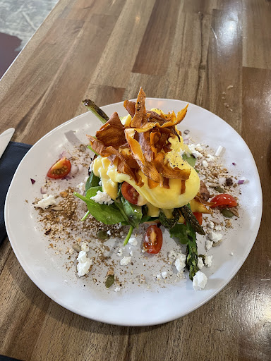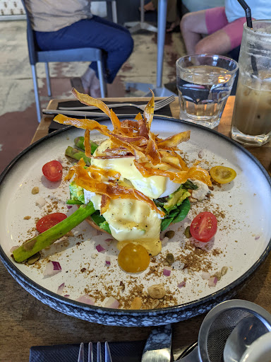 Read moreFive stars, let's get that straight from the outset. Food was great, company was good. Atmosphere? Buzzing. Seats are mildly uncomfortable but if you nab a spot on the bench then you're set. Most impressed by their willingness to accommodate a custom order - had the avo on toast but not on toast, rather I opted to have it on one of the delectable croissants from the display. More than happy to oblige, service didn't show an ounce of frustration. Perfect score on service. Every staff member that passed us checked on our satisfaction. Definitely satisfactory. Full of humans but not too loud. I recently had an experience where this was an issue - not here. I guess the open space works well for that. Menu is short but I don't mind so much, makes making decisions easier. Would be nice if there was a croissant on the menu rather than just in the display but I guess you can't please everyone. Specials all sounded amazing and I'm disappointed in myself for not trying the "cookie monster" shake special. I disappoint a lot of people though so I guess I know how that feels now. I have it on the best authority other than my own that the choc chip pancake special was excellent. My colleague got the veg Benedict. Interestingly when ordering this, he was immediately offered bacon with it. Maybe it's vegan bacon, who am I to judge? Perfect scores make for difficult reviews because like what do you need to say? Everything was great....