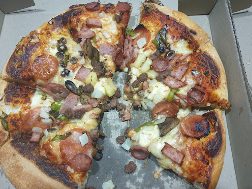 The only reason 3 âââ is because of the extra wait. Gotta say they make a good pizza here. The surf n turf I had was bang on and the BBQ chicken was âââ outa 5 so not to bad. Only one sign about âď¸Covid and a bottle of sanitizer đŚ on the bench. I timed a person's order of the counter from payment to pickup 20 mins.â I ordered mine online with a pick up time of 7:15pm. I left just on 8pm with my order. âIt appears Pizza Huts online ordering system fails when a topping is out of stock. đłCommunicating the problem with the customer prior to pick up is an issue. â¨This outlet was very clean and I noted their team worked efficiently when recieving new orders. I counted a number of deliveries leaving as well. Very efficient also. đľ I will come again if it's an option when 3 Cheese Pizza across the road is...