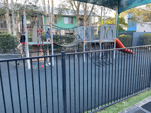 Playground is fenced and good for all ages. The early opening and all day waffles is a bonus too.