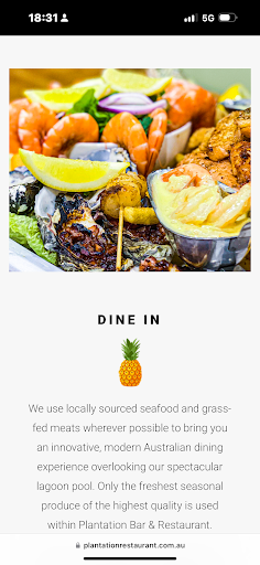 Read moreWent to plantation tonight for a birthday dinner. We had a booking so arrived on time, staff advised us the table we were sitting at, but the table was taken- but that was fine as there were plenty of others to choose from. The resturant only has a few ceiling fans and opened windows- so if you overheat, probs not the best place to go as it was hot at 6:30pm. Once we found a table we looked around for a menu to discover that you need to get one from the service desk, and ask for table water- which was fine, and easily fixed. We ordered well over $100 worth of food and drinks, the great northern is only in tins (tin of great northern and cocktail cost $27). We waited over an hour for the entree to arrive - which was good. And then the mains arrived, the fish of the day had no flavour to it (the salad dressing was more flavourful than the rest of the meal). Was advised it’s fresh, but unsure how accurate that really is once tasting it. The chips were soggy due to the fish sitting on top and the excess salad dressing. My partner ordered a medium rare steak, when it arrived it was well done and chewy. Meanwhile, patrons around us were also not getting their meals correct and one couple was waiting over an hour for their Dessert.