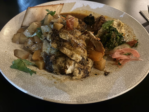 The tagine sauce was watery, lacking flavour, and tasted a bit salty. As for the vegetarian option, they do not replace the seafood with anything other than more pumpkin and two pieces of roasted potato. Maybe there had been another side which had not been on the seafood medley plate, but we couldn't finish either plate and so can not say for sure. A significant portion of the vegetables were also overcooked and bland. I would not recommend this restaurant for vegetarians based on the main course option.