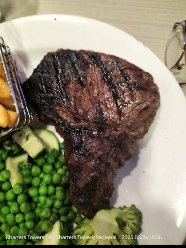 Read moreI highly recommend this place The Sovereign Tavern for your lunch and dinner. The cost of the three meals came to $75.00. I went there with my Dad and his friend for dinner on a Friday night and we got the last table, so I recommend that you phone up to reserve a table as at 6pm it was booked out we were just lucky to get a table that night. The steaks were cooked to perfection and the beers were nice and cold as well. Dad and I went again on the Saturday night but this time we did book a table and I'm glad we did as again it was totally booked out this time Dad got a chicken salad and I got a 400gm steak and again it was cooked perfectly. The staff were really friendly and the atmosphere at the pub was great. The cost for the two meals on the Saturday night was $60.00 as I order the bigger steak from the night before. When I come back to Charter Towers again I will be going back there for a dinner or two. The Sovereign Tavern I highly recommend to just to have a drink there or to have your lunch or...