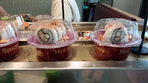 Read moreIt's sushi train, they are all over. Expensive for what they are if you are used to Japanese Prices for sushi trains. Prices are easy to find, pay by plate colour, big sign stating colour and corresponding price on the wall. Somewhat limited selection rolling around on the train as they serve what is popular in that area/that time of day. You are more than welcome to order from the menu though. They have a loyalty card program. Take away is at the front of the store (on the inside of the shopping centre side near the register). Enter through both inside or outside the centre but the line if it's busy is on the shopping centre inside. They will seat you, stool or booth. They will ask what you want to drink and take any orders if you already know. Let them know when you are ready to leave and they will count your plates (and drinks if you ordered one) and pay at...