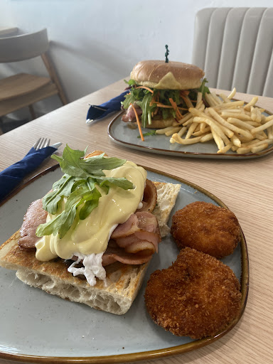 I have been here multiple times, usually at least once a week for work and also for occasional weekend brekkies with family. There is a good selection of cakes and sweets, some are home made like the chocolate brownie which is very nice - and I’m normally not a fan of brownies. My favourite is the raspberry and white chocolate cheesecake. They offer a good deal which is cake and coffee for $15.90 and they offer cream and ice cream with your cake. The coffee is consistently good I’d rate as 4 out of 5 one of the better coffees in town. Fresh juices are divine and the smoothies have real fruit - I have seen some places only use a flavoured syrup. The Benedict is my go to and I really like the smoked salmon they use but had bacon for a change today. We also ordered the steak burger and a side of potato cakes. Portions are large, fresh and tasty, cooked well in clean oil. The staff are always friendly and polite. It can be quite loud inside when there’s lots of people, not a big problem though. The cafe is modern design and fit out and is always clean and tidy. Comfortable seating both inside and outside. Love the crockery! Also, they are dog friendly so you can bring your fur friend and they can sit outside and have water bowls provided with lots of pats and attention. Nice location on the Esplanade opposite the tennis courts, car parking on the street including one disabled car park, plus across the road there’s a larger car park with another disabled car park. Overall it’s a consistently good quality here which is why I...