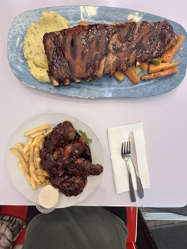 I ordered ribs: The ribs had so much uncooked fat on it, the sauce wasn’t nice at all, I got vege and mash on the side (as we already had chips with the chicken wings) and the vege could easily be mistaken for an Asian style dish (if you had a blindfold on and asked what were you eating), the mash had the so much cracked pepper in there that had me questioning “why”.
