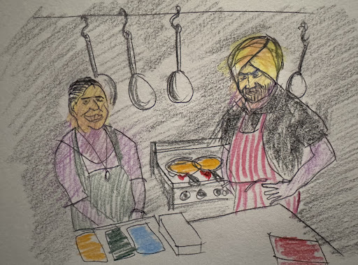 The meal was prepared efficiently and was on the table within 10 minutes of ordering for us six starving bushwalkers. Maynard and I settled for a delicious mango lassi, while our host Roberto had red wine along with Jane, Phil and Brett.