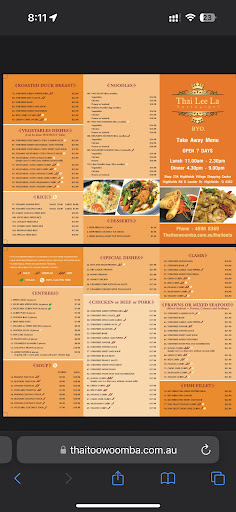 Read moreOrdered a Pad Thai with chicken from the take-away menu $15.50 Added five slices of Tofu to the dish which took it to $28.00. They charged $2.50 per slice of Tofu. Ridiculous!!! I phoned back after checking the menu prices again and the girl confirmed they charge $2.50 per slice. We always add Tofu to our Pad Thai and have never been charged an extra $12.50.You can buy a 400 grams for $2.30 in the supermarket. Also ordered a Beef with Basil which was watery and tasteless and beef was dry. We just moved to the area and were hoping for a good local Thai restaurant. Unfortunately for us it isn't at Thai Lee La in Highfields. One star for the friendly staff and one for...