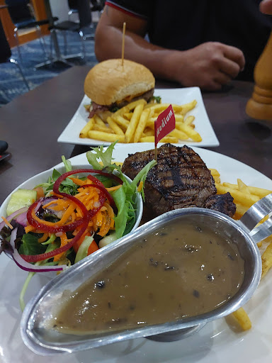 The tables orders were ready (only a table of 5) yet mine was very very well done to the point it tasted like a reheated bbq beef sausage. The dianne sauce tasted like watered down tomato sauce, my plate had chips and some steamed carrot, beans and 3 corn cobs and a side plate came out with chips and mash.. not sure whats going through the chefs mind when i ordered seasonal greens and mash.. but we end up with a surplus supply of fries.. wont be back...