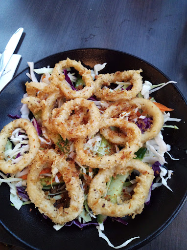 I had been here a week or so ago when Rocky Nats was on. I had a mango smoothie and frittatta and had a wonderful time amongst the atmosphere. Then I made the mistake of coming back a week later on a saturday morning. Biggest gripes first. We had to ask for a staff member to clean a table off as they had crumbs and leftover food from the last guests. The boy came out and gave it a quick wipe, throwing the food onto the chairs and called it a day, leaving the table wet. We got our own serviettes to dry the table and clean off our chairs. I ordered a tea, where unfortunately the cup had lipstick on it, and the spoon had something brown on it that came off when brushed. Food? Who knows. I couldn’t ask the staff member as they dump the things on the table and run. Considering the loudest sound was the staff chatting with eachother out the back and in the cafe, I would assume they were eager to return to their conversations. The guests at the table next to us left, and it took 30 minutes for a staff member to come and wipe it down, again throwing it on the seats and leaving it there. The whole time we were there we were annoyed by flies - sitting inside mind you - and there was one dying on the table next to us. I would highly recommend Investing in an air curtain to dissuade them from flying in at their leisure. The tables didn’t have any serviettes, which is usually no problem, but considering the menus on the table had dried food all through the booklet, maybe they should consider providing serviettes at the table instead. I ordered the mango and coconut pancakes, and my partner ordered the BBQ pulled beef flat grilled wrap. To the staffs credit our drinks and food arrived in a timely manner. His wrap looked good, the utensils and plate were clean, however their salad was cucumber and cherry tomatoes on a bed of lettuce. No sauce or vinaigrette in sight. Very bland and boring for $18.90. However my pancakes were a bit of a let down. The mango was sweet, and the syrup was delicious, however the photo provided had delicate coconut shavings. When my food arrived however I was provided with hard crunchy coconut bits. Not a great texture to have with everything else being so soft. Would I go here again after today? No, I wouldn’t. It is in a beautiful location but unfortunately the service and cleanliness just...