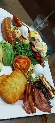 Read moreI'd recommend this as a breakfast place for families with kids. It's spacious and had booths with TVs that were switched into ABC kids while we were there. Awesome! There's good kids options on the menu. My kids had waffles and pancakes which they enjoyed and my wife and I had smashed avocado with poached eggs and the roasted vegetable option with poached eggs which we were both happy with. I had a good iced coffee but my wife wasn't happy with her oat latte. There's an undercover outdoor area out the front as well which was understandably popular! All in all an enjoyable...