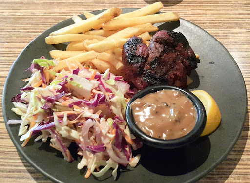 Ordered the $45 rib eye meal - 2 with chips and salad, 2 with veges and mash. The veges were something reminiscent of childhood trauma with beans boiled to death and the mash was lumpy. The chips were soft and dry. One of the steaks was very chewy and no one finished all of their meat. The Dianne sauce was rather tasty, but that probably shouldn't have been the highlight of the dish.