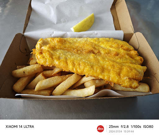 This photo is of the lunch special (snapper and chips) for $13 (card surcharge applies). Perfectly sized for lunch, a non pretentious meal that hits the spot. I like to get away from the workplace for a bit at lunch, there's a few tables and chairs available. Quick and friendly service. One staff member (owner? manager?) even asked me how my meal was today. A nice...
