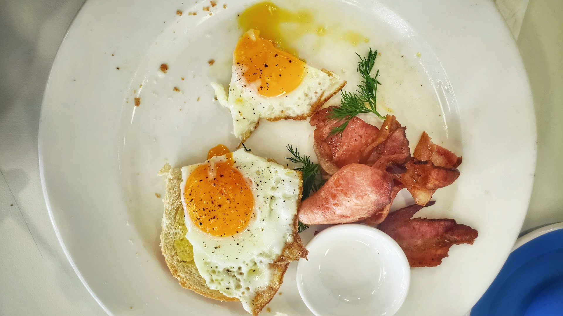The lady said there was no Beagle that I wanted to order on the menu but will serve Sourdough instead. In the end it's 2 piece of white toast on my plate. On my partner's plate, there's not cooked enough egg with watery egg white.