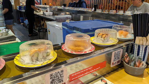 Went there expecting nice fresh sushi, we had leftovers from lunch, no variety unless you ordered over counter which was expensive and we did as nothing was being added to the sushi train about 12 plates going around with stale sushi and the same dish with no variety at all. We ate lunch leftovers!!! Ordered a couple of plates of temura veg and tempura prawns, tasted like old cooking oil, 5 pieces of soggy veg for $15 and 5 prawns for $15. No hot food dumplings or chicken spring rolls or anything up for taking either! We did go at about 6.30pm, it is open till 8pm. No service to speak of, food absolutely appalling. Never again for dinner, it might be better during the day but we wont be going back. Can't recommend anything there. Worst I have ever eaten even spat some back into a tissue I wasn't game to swallow it. Brown avocado in a couple of sushi rolls,...