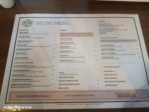 Read moreI first went to this pub on Valentine's day, it was terrible I found plastic in my entree and for that they gave me a 50$ voucher, so I went again to try again with my dad/mum and their was kids running a muck and screaming and the parents were not doing anything about it, so we left and tried spotted dog which was perfect! so tonight I went again to give it another try with the voucher I got given and I was all most charged without the voucher until i realized that they didnt count the voucher onto the bill, from there I got served and got told that it would take 40 minutes to get our mains. And then we got put in a corner at the back of the pub, and waited an hour to almost get noticed because one of the workers forgot to print out the docket and send it to the kitchen, from there we got given free drinks as an apology, and then we got our entrees, and then got given our mains, my vegetables were not cooked, my sons chicken was cold and by the end of it our entrees were the hottest/ best meal...