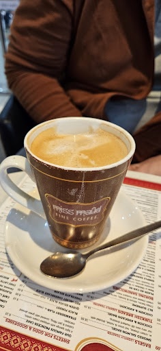 Went to miss mauds on today ordered two flat white coffees and a piece of princess cake when we revived the flat whites it as cold and I questioned the price of the cake as it said7.60 did not relise until I sat down the cake was on the receipt for nearly $9.00 when I asked why the extra was told because my wife ate it in and it was said by staff because it was eaten in it was to pay to wash the of the plate blooming ripp of at that rate she should be buying a new dishwasher every week so think twice if you are eating anything in there no one else in Rockingham shopping centre charged that miss mauds isnât any thing special what a ripp of if she charges this to everyone that eats in there there are other places in the shopping center that gives you a nice hot coffee not a cold one and doesnât charge to eat in beware try other eating places in the centre it used to be a nice fair priced place to go even the tables wasnât cleaned up for the next people to sit down what cost more washing up in a dish washer or wast money on a box and bags...