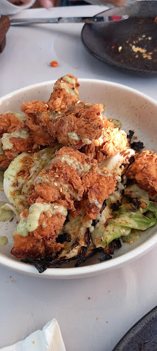 Read moreIt was 'okay', perhaps it was just my selection that missed the mark of being worth $110 for two people sharing 5 dishes. The first was a tiny little bowl of pickled vegetables (that I could've bought in a jar from Foodland) not even a cracker or bread to eat with it. The second was 5 pieces of corn 'ribs' (sections shaved off of the cob); However, I doubt that the 5 pieces we got would've equated to one whole cob & the capsicum(?) dip we received with the corn was okay but the corn had minimal seasoning. The third, was a salad with 2 teaspoons of bean puree sitting under half a head of raw broccoli florets sprinkled with pomegranate seeds and cranberries. The fourth, was a small pork top loin(?) steak glazed in plum sauce on coleslaw, nothing mind-blowing. The last, soggy buttermilk chicken pieces on top of chopped iceberg lettuce, sprinkled with sesame seeds & what can only be described as Big Mac sauce. The chicken was definitely not crispy like the pictures on their website, an original KFC chicken tender would've had more flavour. The last dish was, essentially, a deconstructed chicken burger with Big Mac sauce (made with dill instead of little pickle-pieces). My partner ordered a bowl of chips, which we thought for $10 would be handmade, but the chips had the grainy texture of processed, soggy, frozen, chips you buy in the freezer section. I wouldn't say any of the food tasted bad, but I don't believe that based on the selection we tried it deserves the hype...