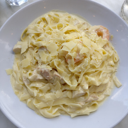 Food is fresh, flavours are robust and servicing sizes are big. We had the small vege pizza, fettucini chicken and prawn in cream sauce, Caesar salad and a raspberry tim tam cheese cake. Cream pasta was rich but not to heavy, not overpowering. Serving size was BIG. The texture and flavours were spot on. Pizza had nice thin crust. Crunchy, not hard and soft inside. Robust flavours in every bite. We could taste the freshness of the ingredients. We couldn't finish the pizza so we took that home. Caesar salad was well put together. Just the right amount of every ingredient. Salad leaves were crazy fresh, not a single brown spot on any leaf. It was a little too much sauce for our liking (we're healthy eaters). We should have asked for sauce on the side. Cheesecake went down easily. Very balanced, not too sweet, sufficient biscuit crumb at the bottom which wasn't too hard and not soggy, just the right density of cheese (thick).