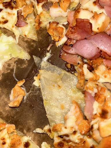 We had a BBQ ๐ Meatlovers pizza extra large and cheese on top. The pizza was 10 minutes too make and cook! And was on time.The person making the pizza dropped the tongs and picked them up with out washing them? So letโs hope that the toilet floors are clean and No you know what on the floor? ๐ฝ The pizza was like the medium pizza used to look like! No where near as Costcos pizzas ! Now they are large pizzas โค๏ธThere was not much toppings on them because on the pizza box it says 50% more pizza and toppings? We did read the reviews and there was a lot of one stars ? We wondered why? 4 stars โญ๏ธ is good โค๏ธWe do not think ๐ค We have seen so many one stars before perhaps they think they are in Texas lone star โญ๏ธ one star for Texas on the flag of USA ๐บ๐ธ lol ๐ The base was thin we were hoping for thicker and the bacon ๐ฅ was like wafers thin as paper and the BBQ sauce was like tomato sauce? Not much taste ๐ in the pizza at all a bit disappointing though! Not much chicken ๐ on the Supreme it was glued chicken ๐ and very sparse? More peppers than anything else? And bland in taste ๐ ? And the Meatlovers had a bit more flavor but not a good pizza ๐? The ingredients were old as if they had been in fridge for a week or more? We thought the children had just come home from school and try to serve in the kitchen ? Might need some people with a bi more age ! My pizza ๐ the other day was so lavish with the sausage โน could count them on one hand lol ๐ ! My friend brought me a pizza and chicken ๐ wings and garlic bread but they did not turn up no meal...