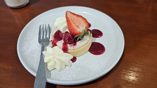 Read moreA great combination of a farm, factory and cafe selling the core product grown - fresh from the fields strawberries. The cafe section is located on an outdoor deck with overhead cover and open views to the surrounding rural countryside. The menu is naturally driven by strawberries and you can have them in jam, fresh with cream or ice cream, in cakes, toppings and to buy fresh in punnets. $8 buys one punnet of about 500gms. Lesser grade quality fruit can be purchased at a discounted price. The strawberry fruit sold was fresh, well packed, very tasty with a rich flavoursome sweet texture. The high grade strawberries are large in size. Other standard fare cafe food is available such as bacon and egg rolls, scones, halloumi and bacon rolls, salads and a variety of other staples. Staff are friendly,...