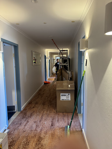 However, to reach our room we had to pass through a construction zone—ladders and materials cluttered the stairs and corridor. It seemed unusual and potentially unsafe to be renting rooms while construction was so visibly underway. The next morning, around 7 am, we were woken by the sound of power tools and construction noise very close to our room.