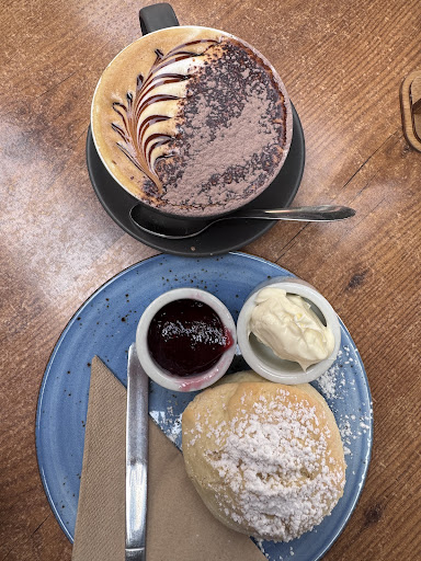 Great food: Baked potato with bacon, sour cream and coleslaw was very generous and tasted great. The apple slice was the best apple slice I've had anywhere by far. Nice biscuit base (perhaps slightly too thick, but I'm not complaining), fresh tasting apple and a nice bit of double cream on the side. Decaf mocha was alright, but not 'excellent' - the chocolate didn't stir in no matter how hard I tried and so the chocolate aspect wasn't as pronounced as it could have been. Nice staff, though I would have rathered the coffee and cake come at the same time (or just ask us when we want it). Overall I'd definitely be back here if I'm in the...