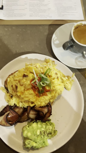 Sweeties Big Brekkie - Swapped scrambled eggs for the standard poached eggs, broccolini, house hash brown, smashed avo, mushrooms, hollandaise, toast. Standard price is $23 but was charged an extra $6 for swapping the eggs…. Which is a bit ridiculous. The dish was ok but there was way too much egg (it looked like a 5 egg scramble), the mushrooms were unseasoned and bland however the rest of the food was good.