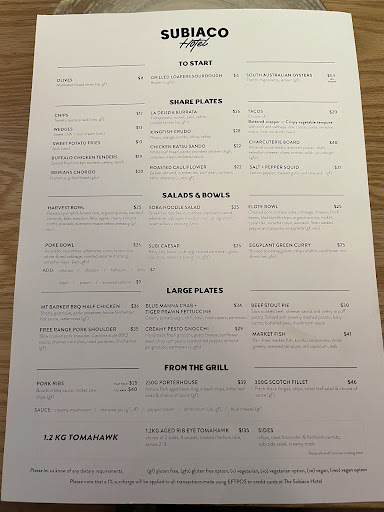 Read moreMy heart sinks as I recall the terrible time my friend I endured at the Subiaco Hotel. I was so excited to be having a night out as a newcomer to Perth. but as soon as we walked into the restaurant, our hopes somewhat diminished. The waitress was downright unfriendly, and told us that we "literally have just six minutes to order, so she would check with kitchen first" She returned and said that was fine.