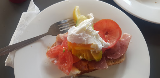 Then some one from kitchen and informed us the special had been over sold and asked for new order. He informed me straight away there would be a price difference without even hearing new order. Here it became awkward so I asked for a menu again and in the meaning time he returns and places notes and coins to cover the cost of the special I had ordered on the table even though we paid with credit card. Now its embarrassing in a small little place. I quickly ordered scrambled eggs , bacon and asked for a small serving of rocket on the side because it had looked so fresh and good. He says that's fine but its an extra $2 for the rocket. I was then annoyed at his lack of apology and his lack of customer service . So I cancelled all that on principle and it was getting weird and I ordered sour dough fruit toast for $6.