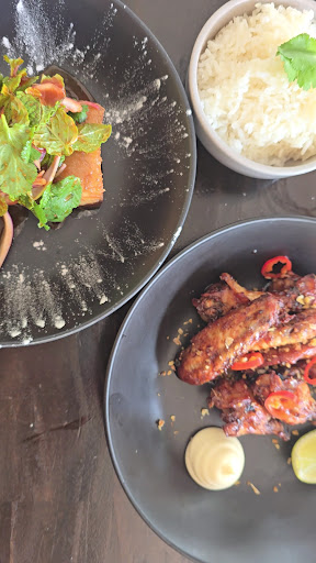 chicken wings, thai caramel, fried garlic. These were really tasty. The chicken pieces (wings and drumsticks) were small. They were crispy & the accompanying sauce really suited the dish. These were unlike any other wings I've tried. It came with fresh sliced chilli but these weren't hot. Wish there was more chicken.