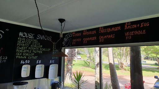 We visited Fishtales Seafood Cafe, Mapleton, Sunday eve. I found no entry in hard copies of local phone directories or Telstra phone books but website though easily on computer and rang. They picked up quickly with courtesy and she was happy to take an order over phone without payment stating she could only take eftpos and mentioning a closing time. She suggested and welcomed us to eat at the front table even if they were closing...so we didn't have to hurry over our meal together. Ample parking space, frogs croaking in the lake next door with winding pathways for walking in the cool of the evening and enough light to enjoy hinterland serenity moments and light enough provided to see what we were eating. We chose and ordered crumbed whiting, prawn cutlets, scallops, chips and a salad; the latter which is a knockout six star for nutrition and taste from my mate. We thought it was quinoa, with tiny capsicum bits, a tasty cut up rocket lettuce with other flavours that I could not identify to duplicate this ample meal for one, by itself, at home. Fish was good too, with lemon. Beverages and desserts available. Nice and easy relaxed place with tables inside and out. Could have a live muso who could get a free meal, playing for an hour...by prior request. This review is too wordy, so...9 for the salad...chips serve and size is good for those who are not supposed to eat chips. Crispy chips thin long size. Good. Fish good. Fish healthy. Eat more fish! Meal for 2 was 37$. Nambour TAs fish and chip shops are cheaper but don't have the seating capacity nor the atmosphere, and we wanted to celebrate a birthday and just being alive!. Should have got some...