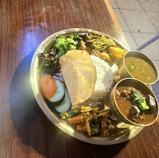 The chicken chow mein was flavorful, with springy noodles and plenty of veggies and grilled chicken. It came with a creamy dipping sauce which makes the dish so much more flavorful. One thing to note tho, it was a bit spicier than I expected, so if you’re not into spice, you might want to ask before ordering. The Nepalese Thali set was beautifully presented and had a nice variety of dishes. The rice was fluffy, and the lentil soup was comforting. I especially liked the different veggies and the crispy papad for texture. The mutton curry was rich and flavorful, though the smell of the meat was a bit strong for my taste. If you’re sensitive to stronger meat aromas, you might prefer a different option.