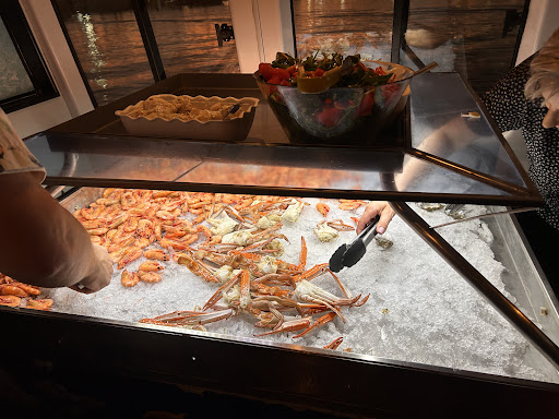 The worst experience of my life. They called it a buffet for a limited number of oysters and lobsters. There were only 16 passengers on the ship, and everyone filled their stomachs with bread and refrigerated salad, wondering at the seafood that was not being refilled. The baked goods on the homepage were not seen at all, and the staff took away their plates and brought frozen cheesecake and watermelon, ignoring customers complaining about the few foods. Surprisingly, it was the whole $95 buffet. I ate two pieces of oysters here. If you want to take your $95 boat, go. The meal is only a service.