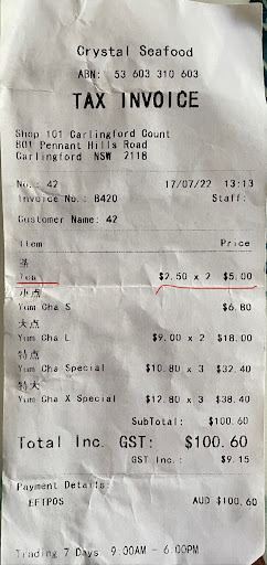 My wife, child and in laws all went together to sit down and enjoy Yum Cha on a Monday at around 11am and we didn't receive any service once we had sat down for 10 minutes, not even a pot of tea to start.