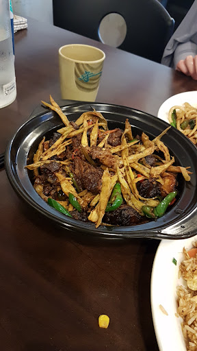 Sensational authentic Chinese cuisine. What you see is the dried bamboo shoots with roasted sirloin, stir fried noodle with seafood & fried rice with egg.