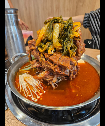 Had dinner here and ordered the large Spicy Pork Bone Hot Pot for four, with the fried rice and cheese add-on at the end. The hot pot came out piled high with pork bones, plenty of veggies, and a rich red broth that had a nice spicy kick but wasn’t overpowering. The meat was tender and the portion size was generous, definitely good for sharing.
