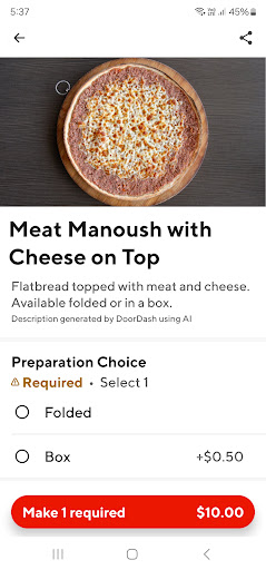 If I could give 0 I would. Ordered 2 manoosh oregano and cheese, and an acai bowel. The cheese was as stiff as I was on my first date 15 years ago.