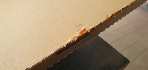 My pizza was a bit soggy, the toppings were not evenly spread across all slices, in fact there was no pepperoni at all in four of the slices, there are tomatoe chucks but there was a large tomato slice too, it was not cut properly and I had to tear it apart myself, most of the topping would slide off the pizza as i pick them up and the worst of all is one of the slice had the crust folded outside the box.