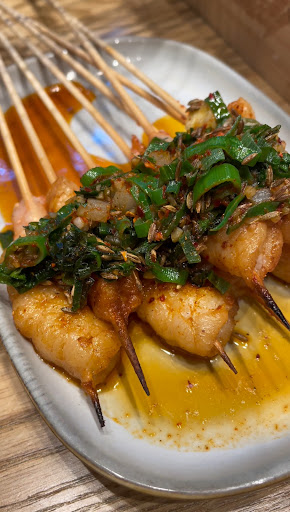 grilled wagyu beef finger 8pcs ($11.8) 🌟 cheap for wagyuuu skewerss tbh and pre good sichuan style grilled lamb 10pcs ($9.9) ✅ looove the juicy and fatty lamb pieces grilled rice cake 3pcs ($10.5) ✅ love this thing omg chewy crispy and taste nuttyy to me bc of soybean powder enoki w pork mince ($9) my friend loved this one sm angry special fried rice ($14.8) 🌟 issss like grandma’s homemade fried rice 🥹🫶 goddess corn kernels ($8) good seasoning but smol portion grilled oyster w garlic mince 4pcs ($28.8) 🌟 so joocy and lots of garlic