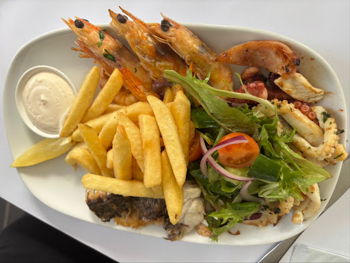 We ordered the BBQ seafood and fish and chips. The fish, barramundi, was delicately cooked, soft yet holding together beautifully. The scallops were exceptional, with a light, cloud-like texture, and the baby octopus, which so often misses the mark elsewhere, was perfectly tender and full of flavour. Worth a mention too was the aioli served with the meals ⦠moreish and bright, like a silky lemon mayonnaise, it tied the seafood together superbly.