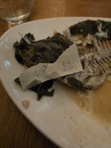 It took 45 minutes for our mains to be delivered and to my surprise there was the kitchen ticket sticking out of the fish ( photo attached after the meal) . We informed the waitress who said she would pass this onto the kitchen.