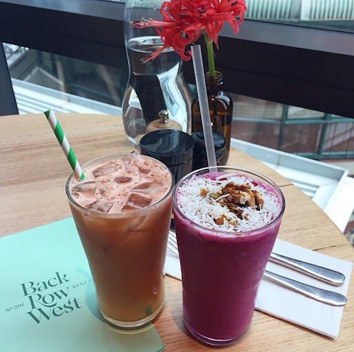 Back Row West has a good selection of healthy smoothies and cold pressed juices, as well as an impressive selection of coffees, and teas to choose from. There is a constantly changing iced tea special. On the day we visited it was a Sweet Cherry variety.