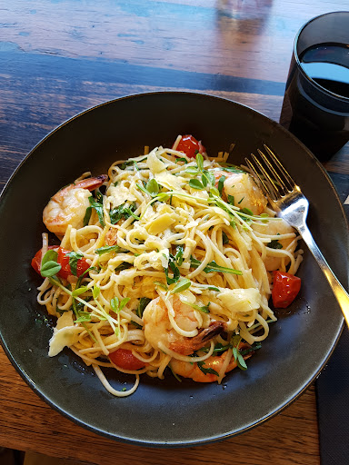 Read moreBake Bar is a thriving little bakery cafe and coffee shop in the double bay shopping precinct that has in door and alfresco dining. There is heating there if the day needs it. Breakfast goes until midday or 2 pm on weekends and public holidays. It then switches to the lunch menu from 12noon until 4. Everything is made on site including all the bread and sausage rolls and pies. We began with a coffee; hubby had the nice macchiato and I got a delicious skim chai latte. I feel I'm a bit of a chai connoisseur and i loved this one. Not too sweet and the flavours infused well through the milk. We were there for lunch on this occasion, sat outside and perused the menu. We both ordered a meal and a salad. Hubby got the prawn linguine, a al dente linguine with white wine and garlic sauce, with a generous serving of prawns and finished with some cherry tomatoes and Parmesan. A great spring menu option. He also got the tuna Niçoise salad, a combination of mixed greens, olives, carrot, potato, beans and topped with a boiled egg and seared tuna slices - this was lovely and it was perfectly cooked. Accompanied with a side of bread of your choice, rye, multigrain, white or gluten free. I went for a beef burger; which was quite a healthy burger in that you elected your bread of choice, it had lettuce, beetroot a bit of aioli, caramelised onions and a nicely cooked meat pattie. I also got a salad; the prawn and avocado salad. Mixed greens, cherry tomatoes, a generous addition of prawns, a aioli dressing and a slice of toast. We also saw some customers eating the sausage rolls so decided to order these too; a lamb and Harissa as well as a beef sausage rolls. A crisp pastry filled with a nicely seasoned filling. The staff were very accommodating, efficient with their service and very personable. A lovely choice of a venue...