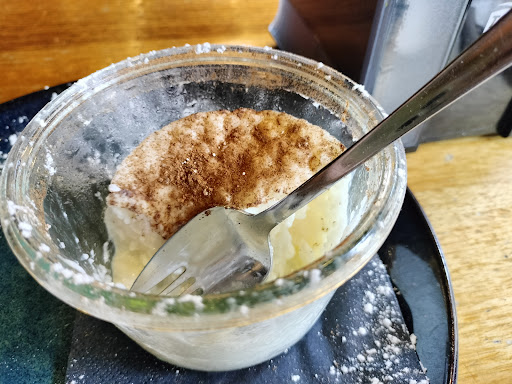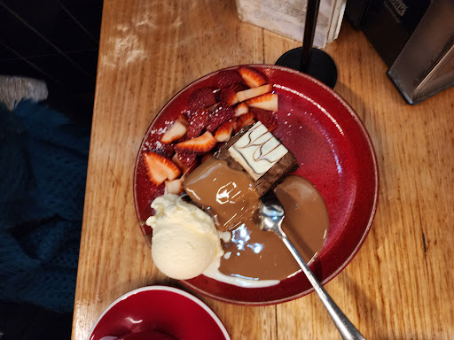 Read moreAVOID this place! I went here to grab a coffee and a snack. It was mid afternoon so this was one of the only places open. There was not one other patron, I should've known better just on that alone. The girl on service had a look on her face like she was being held there against her will. I had to ask her to repeat what she said to me 3 times as the music was so loud and this young lady was mumbling into her boots. I had a look at the dessert selections, there were quite a few. I know it's a dessert place but I wanted something with a bit less sugar, so I chose a simple rice pudding. The mumbling girl offered to smother the pudding in Nutella or caramel sauce. Again I had to ask her what she was saying as she was almost incoherent. I declined the offer to destroy a perfectly good rice pudding in such a fashion. I ordered a large chai latte to go with my pudding. My order arrived, and the rice pudding, and in fact the entire plate, had been doused in icing sugar. The pudding itself had a mini empty ice cream cone just dropped on top of it. Presentation was zero. The pudding itself was too sweet and didn't have enough cinnamon in the mix. The mini ice cream cone was a mystery. Then there was the chai. The latte had been made using so much chai mix that there was a huge pile of sludge in the bottom of the cup unless you constantly stirred the cup. The taste on both these items was ok, but way too sweet. The size of the rice pudding was reasonable. The price for these two items was not reasonable. TWENTY TWO DOLLARS for a cup of rice and milk and a cup of chai sludge! No wonder this place was empty! I most heartily do NOT recommend this place. For anything! A terrible waste of a...