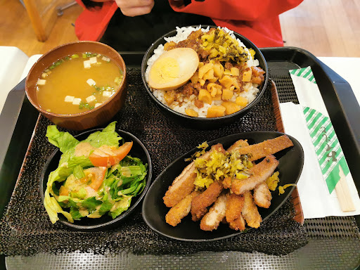 The food is okay, its missing flavour, we ordered the pork chop bento and the prawn bento and the porkchop bento had no sauces of any kind. They come with a generous serving of rice and tofu.