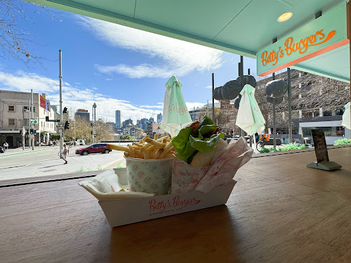 Read moreI was very excited to hear that Betty's Burgers was opening in a formerly unloved location in Kings Cross and the fitout, view and ambience are second to none. It's been disappointing then, that the burgers don't quite live up to that expectation. For a fairly high price point ($20-25) for a basic burger, fries and drink - there are no meal deals or combos - the food really needs to stand out compared to other, cheaper options in the vicinity, including the major burger chains. Sadly, the burgers are quite small, about half the size of other burgers, basic and seem to use a flat, doughy, almost steamed bun rather than brioche or regular burger bun. They are not warned or heated either, so you have the cold bun contrasting with the semi-warm contents. Fries are small and usually a bit limp, not crispy, although the onion rings were good. Staff are friendly and there seem to be a lot of them running around but it still took 10 minutes to make my meal when there was no one else in the restaurant. I've been a few times now and it hasn't improved so will probably give it a miss in favour of the local shop down the road which charges $15 for a much...