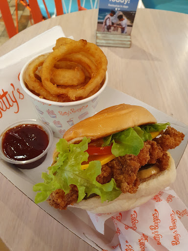 Read moreBetty’s Burgers has a good system going which works. You walk in and find your own table, and when you’re ready you walk up to the order point and place your order at the till, you’re then given a little electronic buzzer which beeps when your food is ready and you walk up and collect it from a window and take it to your table. So you sit yourself down, place the order yourself and take the food to the table yourself. This system frees up the team behind the counter to do an amazing job at customer service and working together to get the drinks and food ready for takeaways and diners sitting in. Everyone was mucking in and helping and it got the orders out quickly. The team were also smiling and cheery the whole time in front of customers and with each other back of house, it’s a good little system that works really well and they seem to have expanded since the last time we visited a few years ago. They have a good selection on the menu including plant burgers, so something for everyone, i had chicken and my partner had the Bettys Deluxe, and we had sides of fries each. It was cooked promptly and both meals tasted really nice with a good portion of fries. Would definitely recommend, nice atmosphere, nice food and...