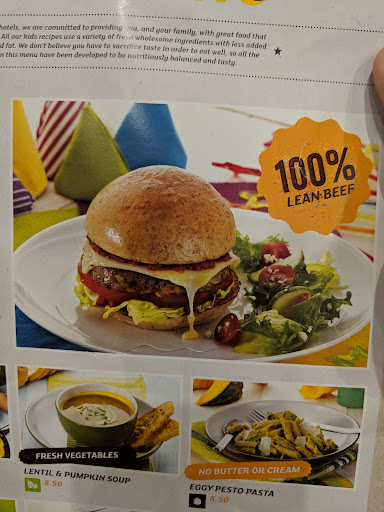 Kids get to eat free here and the menu looks amazing with veggies and salad to go with the meals... If only that's what is served, instead you get dogfood with chips... What a joke. The burger that came out was a bun, disgusting looking meat with mayonnaise and a massive side of chips. Compare that with the menu items in the photos below.... I was then offered a salad to compensate for the pathetic food that came out, and got what you can see in another attached photo.