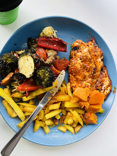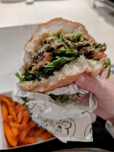 It's hard to get a good vego burger, especially in the Shire, and the ones you do find usually have boring ingredients and bland patties. Not here!! The bun was seeded, pretty fresh, and not overly processed. All the veg was fresh, even the avo was perfectly green. Patty was not too dry (often happens with falafels and faux meat, or, you get a pea and corn patty that's dripping in oil) and had a good crunchy consistency with interesting flavours. The chilli jam was an awesome sauce choice too, just right and not too sweet. We also got a large side of sweet potato fries and it was a pretty generous portion, nicely salted.