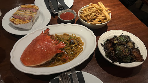 We then moved onto our mains which consisted of a $22 burger and a ~$33 spanner crab pasta. The burger did not come with fries, was tiny in portion and tasted like a bougie big mac - however, it still tasted good. The spanner crab pasta was the most disappointing dish of the night. Their usual was not available at the time to which the waitress politely informed us that the crab would be replacing it. That was totally fine with us. When the dish came out we were honestly quite pleased with the presentation as it came with the shell. Thats the only positive thing we had to say about this dish. The portion was extremely small and there was no crab meat to be found in the pasta or the shell. Flavour wise it lacked depth and needed more salt. Pasta tasted more like leftover prawn heads mixed in with pasta sauce rather than crab. For $33 we expected more pasta especially considering there was no meat and flavour wasn't great. We checked their insta to see what the crab pasta dish looks like - it seems that it was more loaded with pasta. The total spent was $101 for 2 appetizers and 2 weeny teeny tiny mains (toddler sized burger and unimpressive pasta).